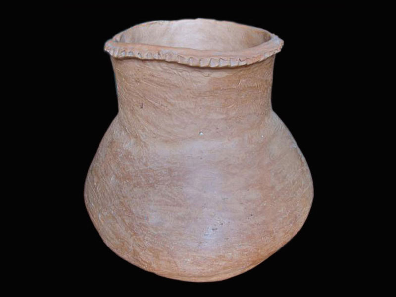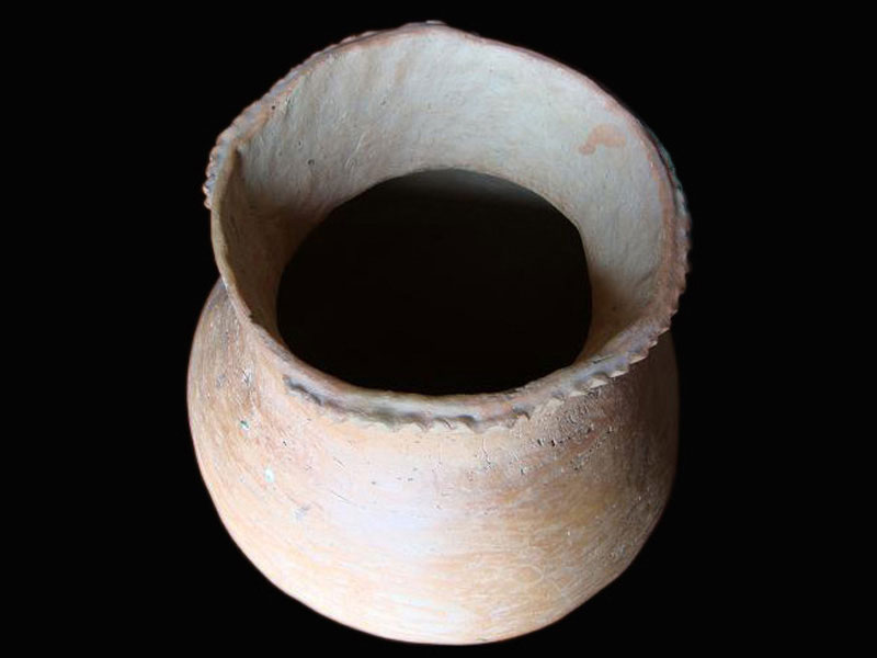 Características formais: Utensílio com boca um pouco mais estreita que a parte inferior arredondado; e com a borda decorada com acordelado.