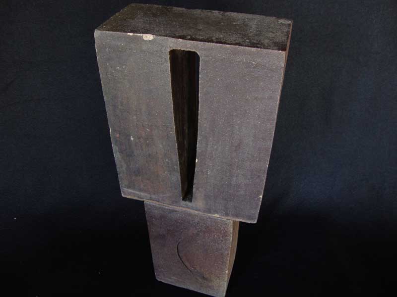 Características formais: Conjunto de duas esculturas móveis com Formas tridimensionais retangulares, na obra base está inserida uma fenda vasada, as peças apresentam cor natural da argila sinterizada, na queima.