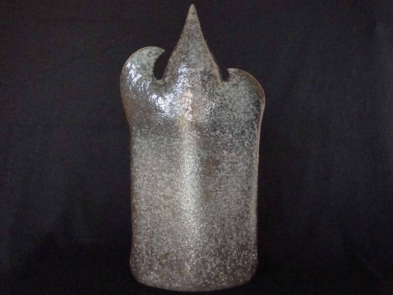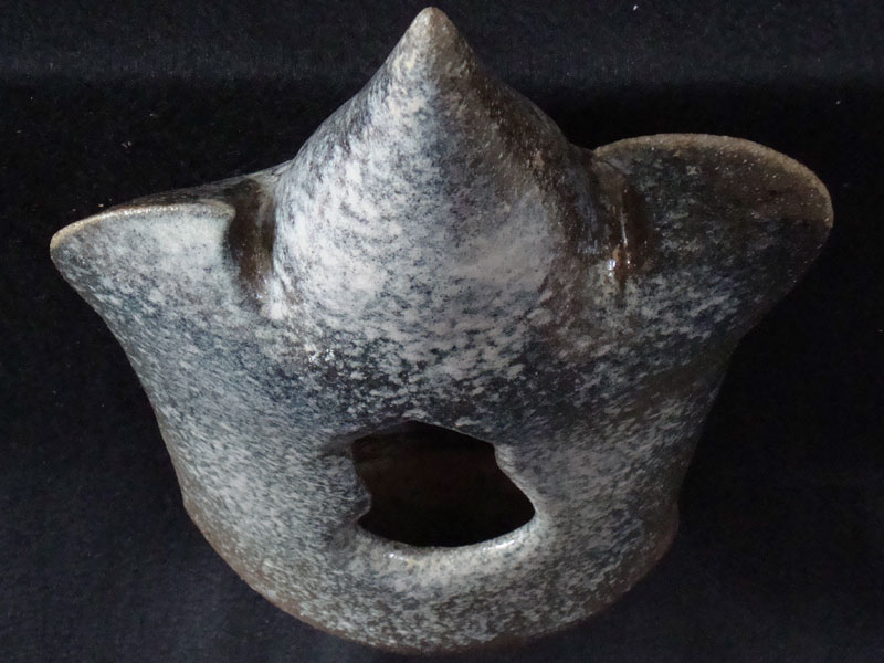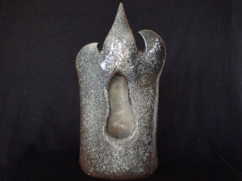 Características formais: Peça da Série Forma Habitada modelada por placa e rolinhos com três pontas na extremidade alta sendo a ponta do meio maior e reta. Tem uma abertura no centro e é toda esmaltada.