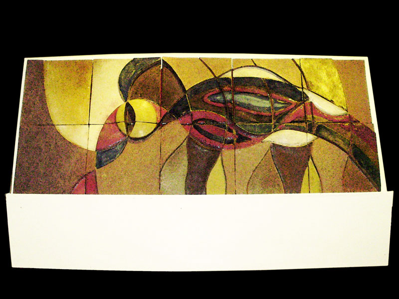 Características formais: Painel de 10 azulejos, em baixo relevo de cores vivas e quentes, representando pólipos que se entrelaçam de forma aleatória.