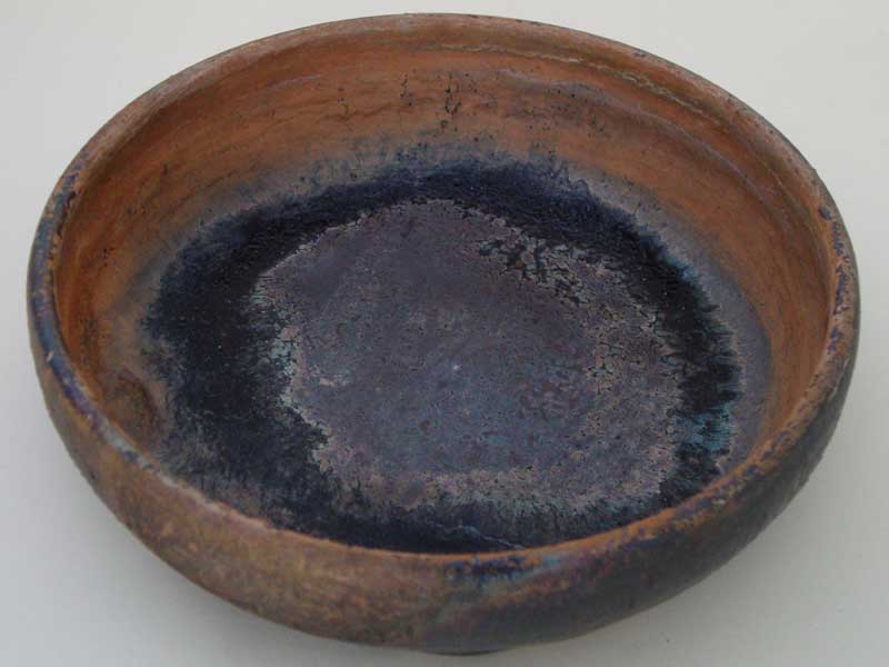 Características formais: Tigela rústica torneada. Pequena e rasa, está parcialmente esmaltada com vidrado negro à base de óxidos de ferro e manganês, com manchas em espectro de cores entre rosa e verde, similares ás do óleo, e leve brilho metálico. Esse vidrado recebe o nome japonês "yuteki-yohen", significando, literalmente, "pequenas bolhas de óleo". A parte esmaltada da superfície apresenta marca de pequenas bolhas produzidas durante o processo de queima. Possui inscrição em japonês no verso.