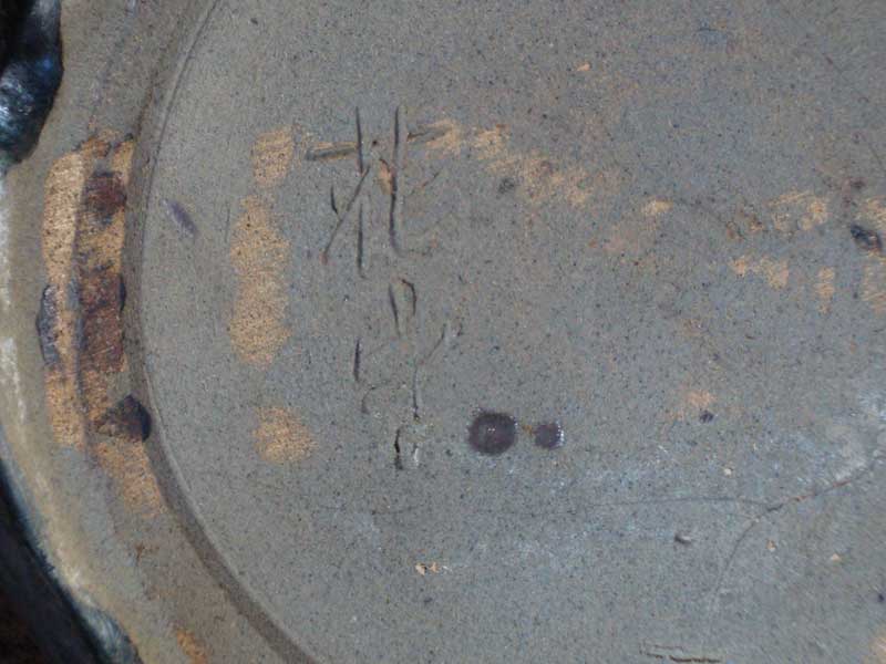 Peça utilitária do ceramista japonês Toshiyuki Ukeseki, feita em 1988, período posterior a sua estada em Cunha, SP. A inscrição em caracteres japoneses existente no verso não é a sua assinatura, significando algo como "protejam as flores". Pertence a coleção particular de Mieko Ukeseki.