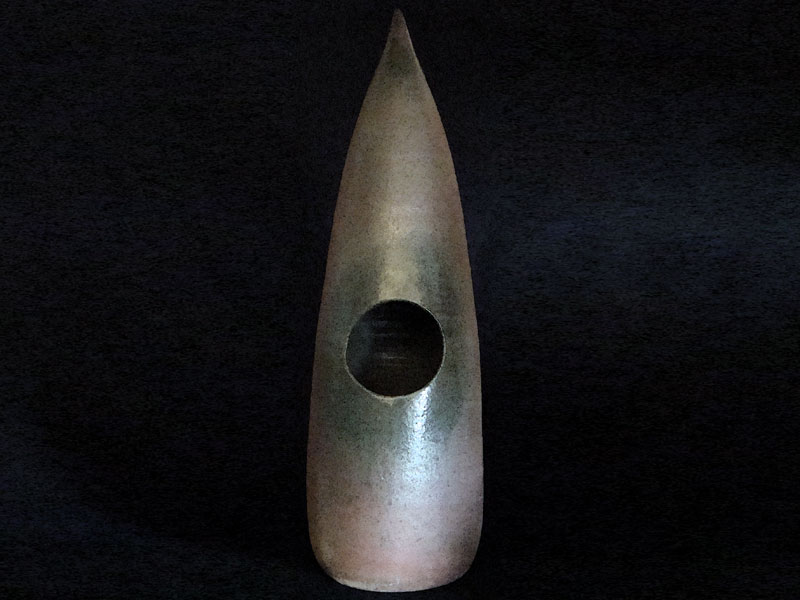 Características formais: Escultura da série mergulho, onde VICCO expressa sua obra como uma busca de identidade própria. O cone tubular com ponta, expressão marcante dessa série, é recortada em círculo no centro, encontrando um vazio que se aprofunda pela transposição do esmalte verde borrifado.