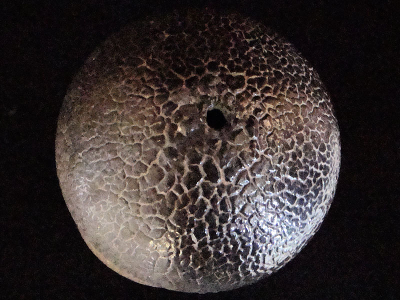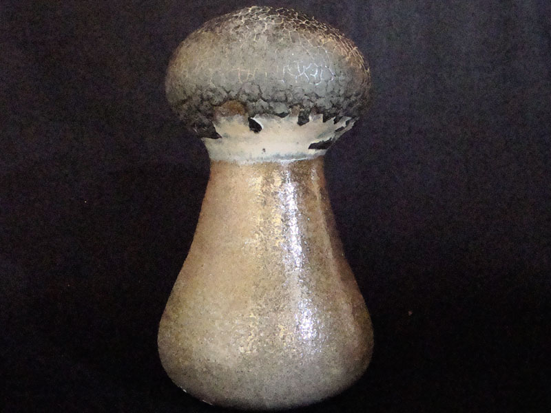 Características formais: Peça torneada em duas partes, com aparência de um cogumelo e esmaltada.