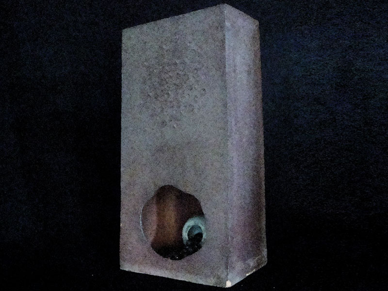 A caixa habitada, arquétipo da casa, tem embutida uma intenção de introspecção, intimidade, proteção e recolhimento. Esta obra participou da exposição "FLUXOS", em homenagem ao relançamento do site do MeCC, em outubro de 2025, na Casa do Artesão em Cunha, SP.